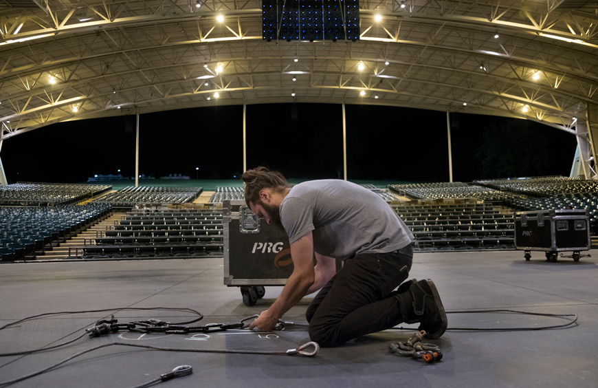 We recently posted here on The Who’s news pages about the effect that the worldwide pandemic is having on the music industry and particularly on the millions of people who work in that industry. We’re pretty sure that many of you have on occasion, when flicking through a copy of the tour book for any band or artist, been quite surprised to see on the credits page the endless list of people who were involved in getting the show on the road. The long hours of travelling by road or air to get the artists and the truckloads of equipment to each venue, to set it all up – the tour bus drivers and crews, the road crews, the ticket-takers, the stage builders, carpenters, the stage set, the screens and drapes, the lighting designers and lighting rigs, the sound equipment and monitors plus all the amplifiers and instruments, mixing desks, video equipment, wardrobe, dancers, the merchandise people, the countless teams of people who set out the seating and barriers, the caterers, the security crews and the hospitality crews, the guys who clean the whole place up – not just before a show but clean up after you’ve left the venue. That’s a lot of people. A quick glance at the tour book for The Who’s Moving On! tour shows a list of well over 85 people in the basic crew – and that doesn’t include all the musicians in the various orchestras who have accompanied the band on this tour plus all the support industries who help make the shows happen.