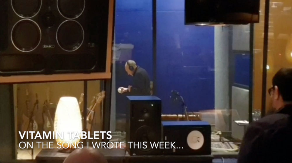 Really, it’s still just me on the music, with Dave Sardy producing, Jim Monti on the computer, Myles Clarke assisting on computer, Simon Law doing guitars. I’m playing vitamin pills and bass guitar. Roger is doing vocal rehearsals on the songs somewhere else . . . as I’ve said before. I did a publishing conference last night to announce my novel, but forgot to take pictures…. so no Instagram on that. Our video helper Brian Beaver needed some time to rest his brain – like me he’s been working flat out, but unlike me he isn’t working on his own creative stuff. So I wish him well, and I apologise for my crappy video while he’s away.