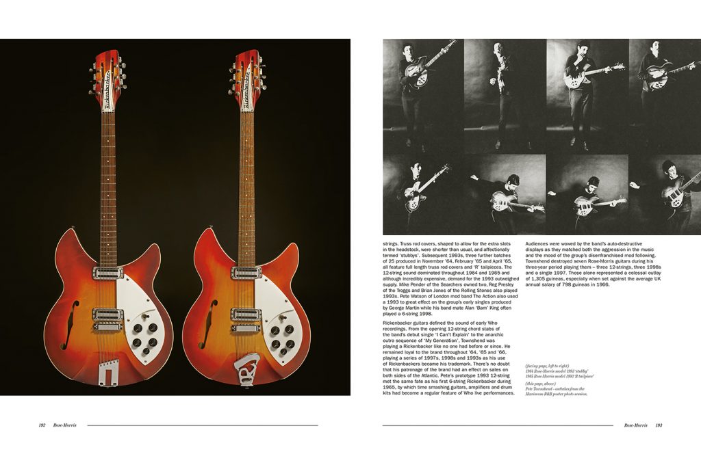 Between 1964 and 1966 Pete was rarely seen without one of his beloved Rickenbacker guitars. This fantastic new book by brothers Martin and Paul Kelly details the era he played and smashed these to pieces with stunning original photographs plus gorgeous photography of all the models Pete used including the two Rose-Morris twelve strings pictured here.
