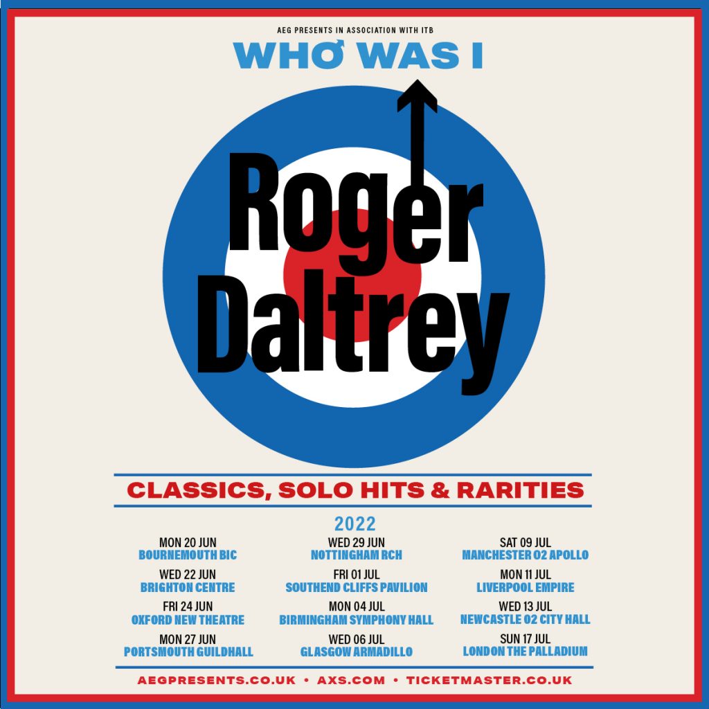 Last autumn, due to ongoing concerns about the uncertainty of the Covid-19 situation as it could have affected his band, crew and audience, Roger Daltrey decided to move his WHO WAS I solo UK Tour to summer 2022. All rescheduled dates are listed below.